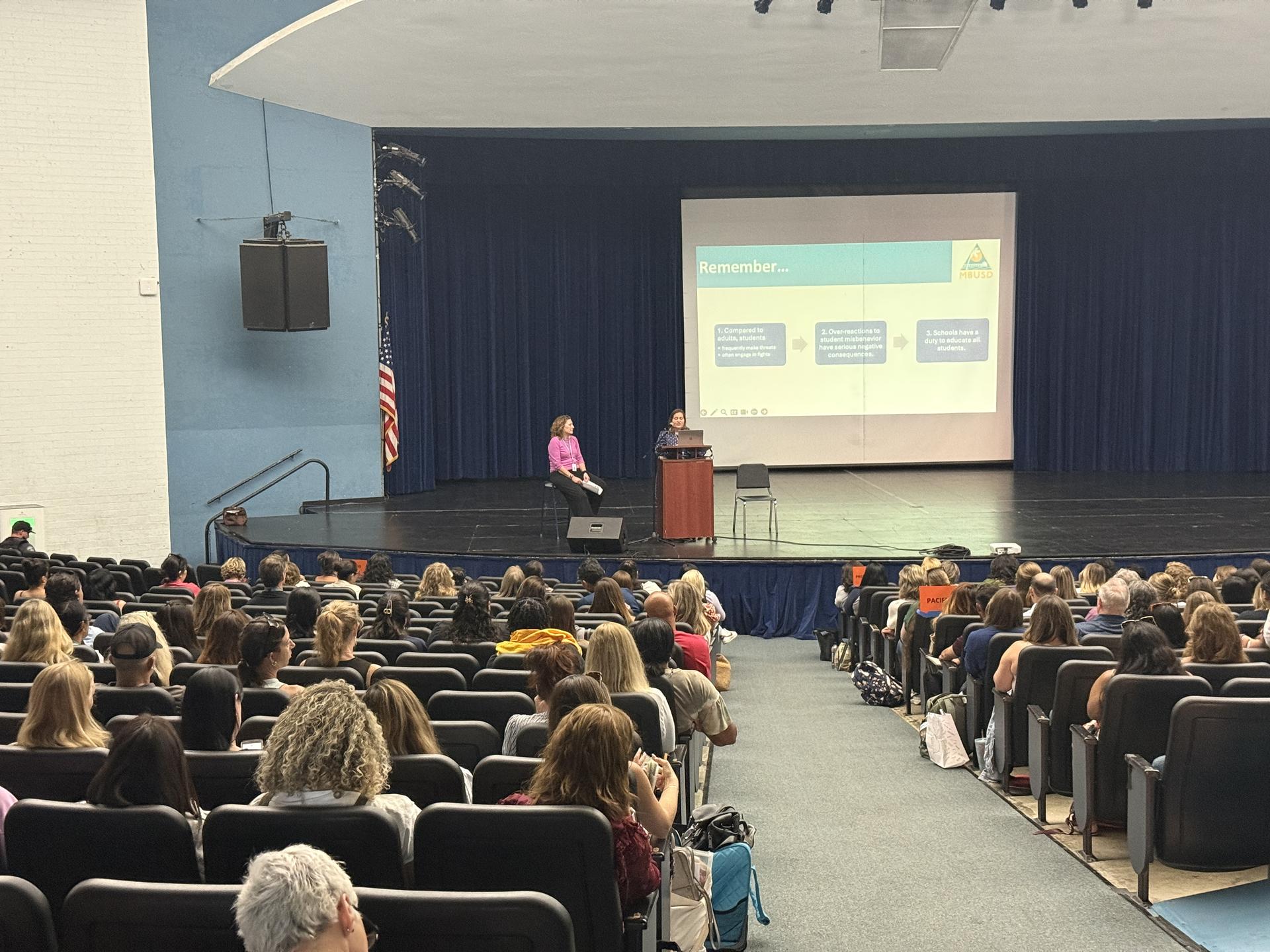 Safety has been an ongoing priority built into everything we do. This year, MBUSD is focusing on school safety with a proactive approach that goes beyond traditional training. Staff attended research-driven sessions designed to equip attendees with the tools and confidence that will help them to respond effectively in any situation.