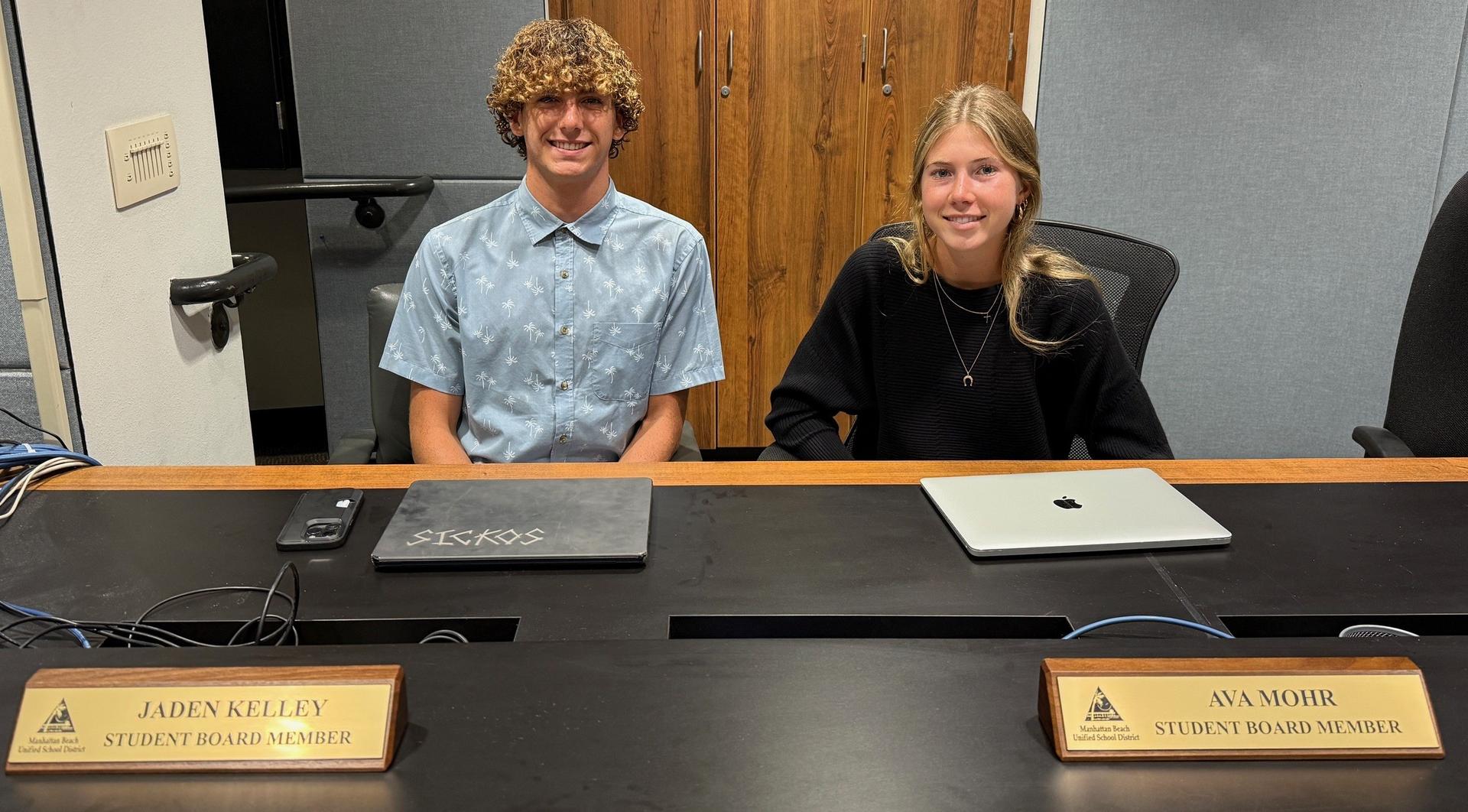 Welcome to our newest student board representatives! Mira Costa students Jaden Kelley and Ava Mohr will serve as voting members of the Board, while MBMS student Amaya Grings will represent MBMS.